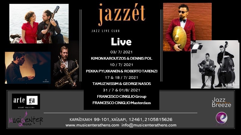 Η δημιουργική ομάδα του Jazzèt Cafè επανέρχεται στο μουσικό προσκήνιο και προτείνει μια σειρά από εκλεκτές jazz συναυλίες, προσκαλώντας το φιλότεχνο ακροατήριο του, να απολαύσει καλοκαιρινές τζαζ live βραδιές με εξαίρετους καλλιτέχνες από την ελληνική αλλά και διεθνή τζαζ σκηνή.