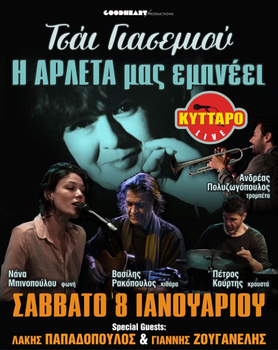 Το Σάββατο 8 Ιανουαρίου το Κύτταρο live θα φιλοξενήσει μια μουσική παρέα σε μια βραδιά αφιερωμένη στα τραγούδια της Αρλέτας.