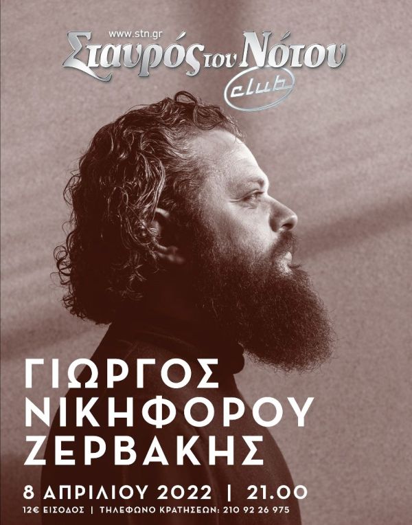 Ο Γιώργος Νικηφόρου Ζερβάκης, ένας από τους πιο εκφραστικούς ερμηνευτές και ανήσυχους δημιουργούς που ανέδειξε η μουσική σκηνή τα τελευταία χρόνια έρχεται την Παρασκευή 8 Απριλίου στο Club του Σταυρού του Νότου.