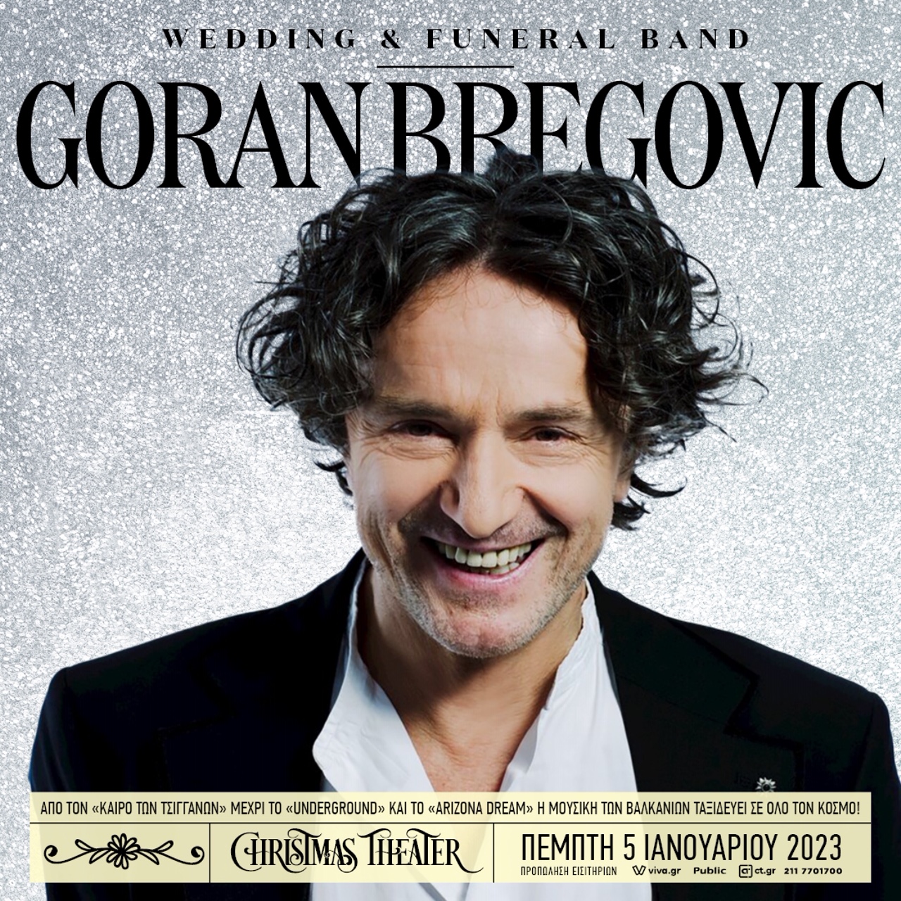Η συναυλία του στο Christmas Theater περιλαμβάνει τις πιο διάσημες στιγμές του από το παραδοσιακό «Ederlezi» και τον «Καιρό των Τσιγγάνων» μέχρι το «Mesecina» και το «Kalasnjikov» αλλά και το υπέροχο «Ausencia» από το «Undergound» και φυσικά μελωδίες που ντύθηκαν με ελληνικούς στίχους και έγιναν αγαπημένα τραγούδια όπως «Το Βενζινάδικο» ή το «Θεός αν είναι» και το «Παραδέχτηκα».