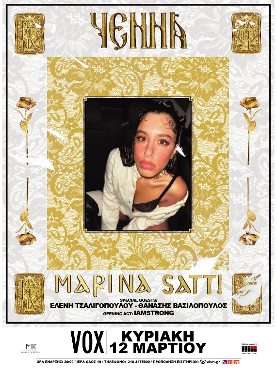 Λίγους μήνες μετά την κυκλοφορία του πρώτου της άλμπουμ “YENNA” («Γέννα») και την κατάκτηση της κορυφής για άλλη μια φορά με τα νέα της τραγούδια «Πάλι», «Πόνος Κρυφός», «Σπίρτο και Βενζίνη», αλλά και μετά την πρόσφατη live εμφάνισή της που άφησε τις καλύτερες εντυπώσεις, η Μαρίνα Σάττι επιστρέφει στη σκηνή του Vox, για μία ακόμα μοναδική παράσταση, την Κυριακή 12 Μαρτίου.
