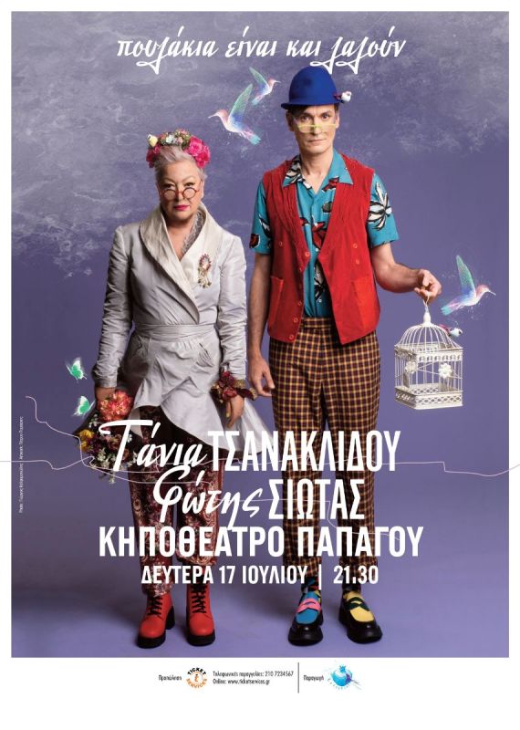 Στις 17 Ιουλίου, στις 21.30 ραντεβού στο Κηποθέατρο Παπάγου με την Τάνια και τον Φώτη για να δούμε, να αισθανθούμε και να τραγουδήσουμε παρέα με δύο καλλιτέχνες που έρχονται σαν δυο πουλάκια και λαλούν όλα όσα έχουμε πεθυμήσει, όσα μας συγκινούν και όσα μας ξεσηκώνουν.