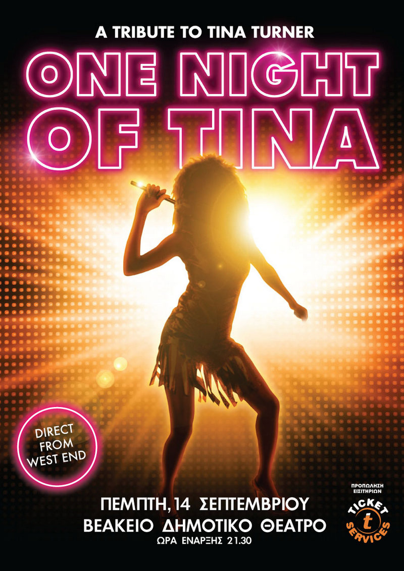Το βραβευμένο tribute show «One Night Of Tina» που έχει ταξιδέψει σε 26 χώρες και έχει μαγέψει χιλιάδες θεατές, έρχεται από το Λονδίνο και στην Ελλάδα, για ένα μοναδικό αφιέρωμα στην υπέροχη Tina Turner, την Πέμπτη 14 Σεπτεμβρίου, στο Βεάκειο.
