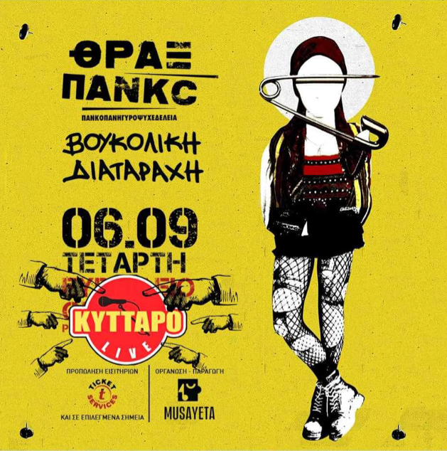 Την Τετάρτη 6 Σεπτεμβρίου ΘΡΑΞ ΠΑΝΚC και Βουκολική Διαταραχή γεμίζουν μελωδίες το Κύτταρο σε ένα πανυγηρικό πανκοβουκολικό γλέντι! Ανάμεσα από τις ψυχεδελικές και ταραχώδεις μελωδίες των ΘΡΑΞ μέχρι τους ασταμάτητους και εκστατικούς αυτοσχεδιασμούς της Βουκολικής Διαταραχής θα πέσουν χορευτικά κορμιά! Μια συναυλιακή βραδιά με τους ήχους της γκάιντας και του κλαρίνου να πλέκονται σε παραδοσιακά μονοπάτια αλλά και σε πρωτότυπες συνθέσεις. Συνίσταται η χρήση άνετων παπουτσιών... ...and let's get this Γλέντι started!