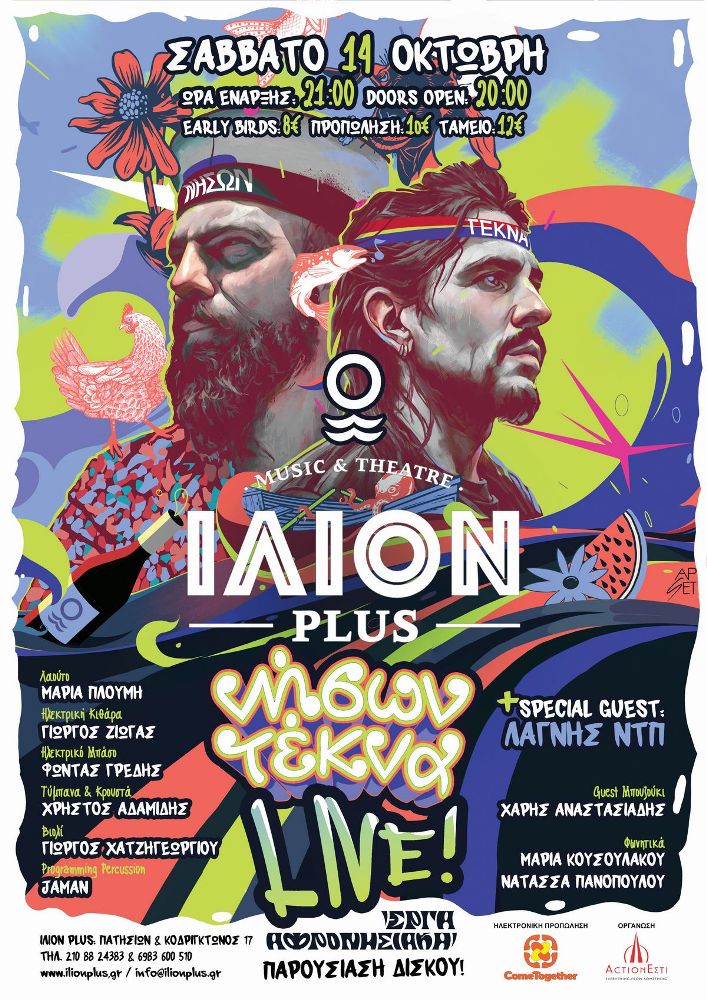 Το Σάββατο 14 Οκτωβρίου οι Νήσων Τέκνα ανεβαίνουν στη σκηνή του ΙΛΙΟΝ Plus για να μοιραστούν το πρώτο τους άλμπουμ, το οποίο χαρακτηρίζεται από αιρετικό χιούμορ, νησιώτικα afro beats και θετική funky διάθεση.
