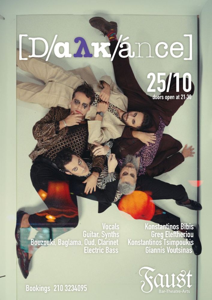 Ο Κωνσταντίνος Μπιμπής, γνώριμος στη σκηνή του Faust εδώ και μία δεκαετία, πιάνει το μικρόφωνο και με ένα τρίο υπέροχων μουσικών πολυεργαλείων επιστρέφουν για μία σειρά από ακόμα πιο θεότρελα live. Στις κιθάρες, στα synths και στα productions είναι ο Γρηγόρης Ελευθέριου. Στο μπουζούκι, τον μπαγλαμά, το ούτι και το κλαρίνο είναι ο Κωνσταντίνος Τσιμπούκης. Στο μπάσο και το bass station είναι ο Γιάννης Βουτσινάς.