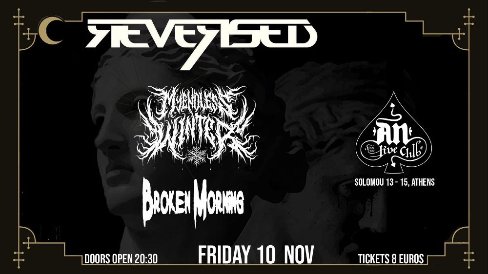 Οι Reversed, My endless Winter & Broken Morning κατεβαίνουν τα σκαλιά του θρυλικού υπογείου των Εξαρχείων, για να μας εκφράσουν όσα τους απασχολούν, υψώνοντας το ανάστημα τους απέναντι στην κοινωνική αποξένωση, απομόνωση και κριτική.