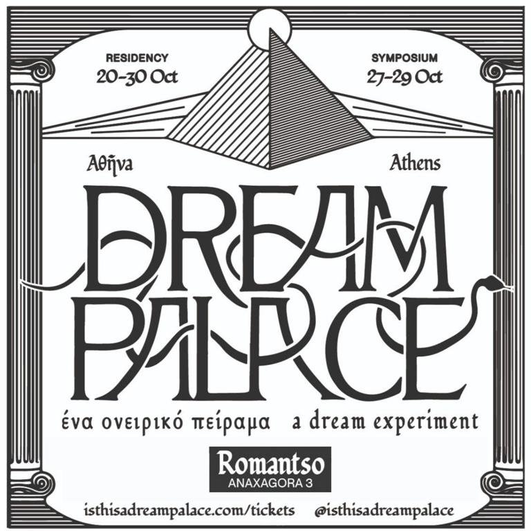 To Dream Palace είναι ένα ονειρικό πείραμα, μία διεθνής διεπιστημονική γιορτή της τέχνης, της ιστορίας, της επιστήμης και της κουλτούρας των ονείρων, που θα πραγματοποιηθεί για πρώτη φορά αυτόν τον Οκτώβριο και συγκεκριμένα η πρώτη του διοργάνωση θα είναι στην Αθήνα.