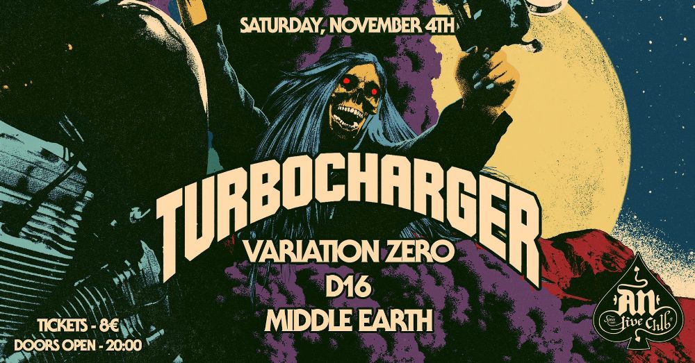 Οι Turbocharger για πρώτη φορά στη σκηνή του AN CLUB μαζί με Variation zero , D16 και Middle earth! Ένα γεμάτο ένταση line-up που μόνο σκοπό έχει να απογειώσει το Σάββατο της 4ης Νοέμβριου στα ύψη χωρίς καμία αμφιβολία.