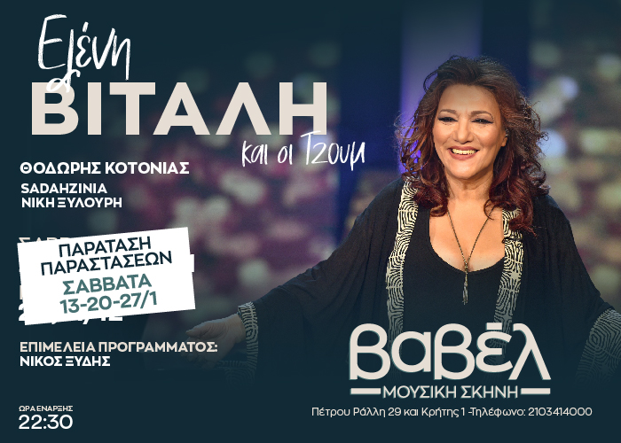 Αυτόν τον χειμώνα, η Ελένη Βιτάλη έρχεται στη μουσική σκηνή ΒΑΒΕΛ για να μας ζεστάνει με τις αυθεντικές ερμηνείες της και να φωτίσει τις χειμωνιάτικες νύχτες μας με το άστρο της.