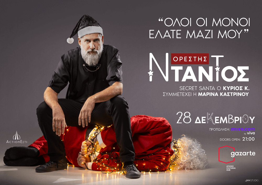Την Πέμπτη 28 Δεκεμβρίου δίνει ραντεβού στο Gazarte, μαζί με τους πιστούς του μουσικούς συντρόφους, Λεωνίδα Πετρόπουλο (μπάσο), Γιώργο Καρδιανό (κιθάρες, πλήκτρα, programming) και Γιάννη Ριζόπουλο (τύμπανα). Στον ρόλο του Secret Santa ο Κύριος Κ., ενώ συμμετέχει και η Μαρίνα Καστρινού.