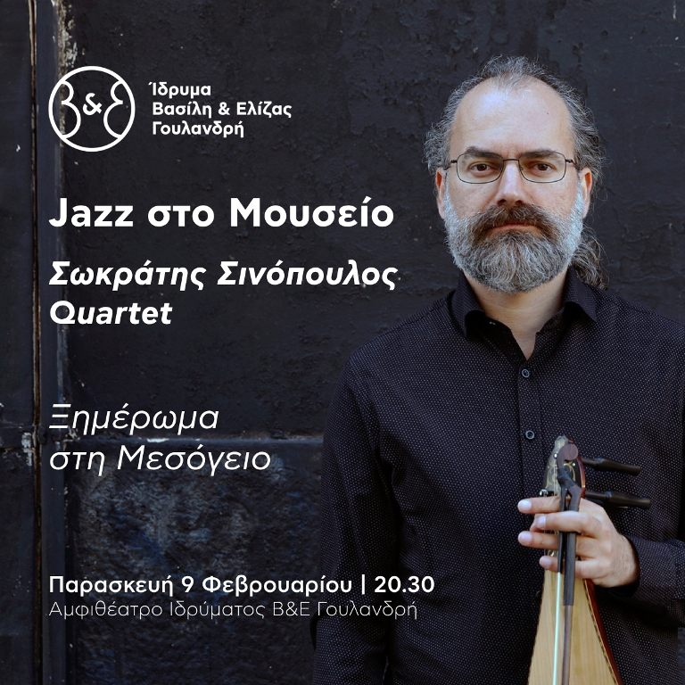 Ο νέος κύκλος της σειράς συναυλιών του Ιδρύματος Β&Ε Γουλανδρή Jazz στο Μουσείο, που εξερευνά διαφορετικές πτυχές της Μεσογείου αντλώντας έμπνευση από την περιοδική έκθεση «Ο Νεοϊμπρεσιονισμός στα χρώματα της Μεσογείου», συνεχίζεται με την παράσταση «Ξημέρωμα στη Μεσόγειο» από το κουαρτέτο του Σωκράτη Σινόπουλου την Παρασκευή 9 Φεβρουαρίου.