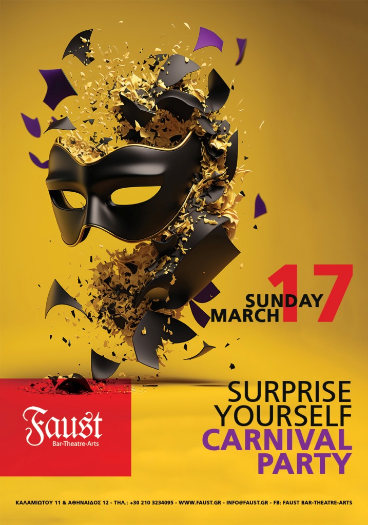 «Surprise yourself Carnival Party» λοιπόν, στο Faust, από τις 10 το βράδυ μέχρι πρωΐας!