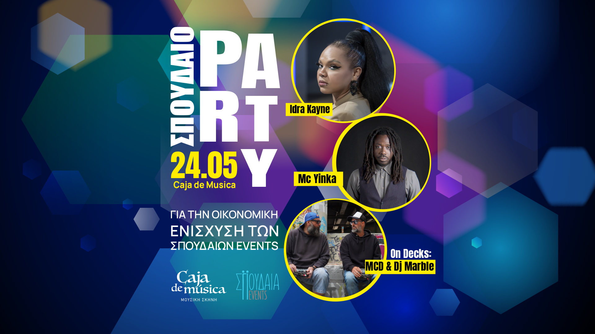 Η Idra Kayne και ο Mc Yinka θα ανέβουν στην σκηνή για να μοιραστούν το ταλέντο τους, ενώ στα decks τον ρυθμό θα δώσουν το legendary duo, MCD και Dj Marble. Την βραδιά θα ανοίξει ο Stasi_Jo.
