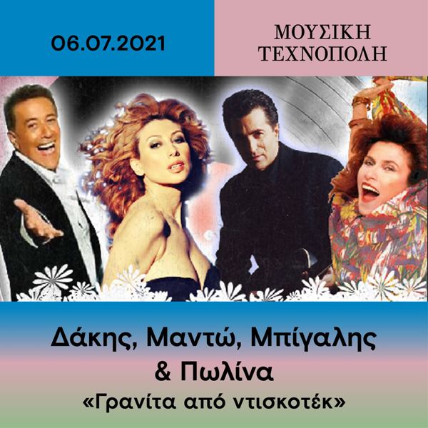 Στις 6 Ιουλίου, ο Δάκης, η Μαντώ, ο Κώστας Μπίγαλης και η Πωλίνα θα μας κεράσουν πολλές μουσικές “γρανίτες” με γεύσεις από την εποχή των ντισκοτέκ, στο πιο ξέφρενο 80s και 90ς πάρτυ, στην Τεχνόπολη του Δήμου Αθηναίων.