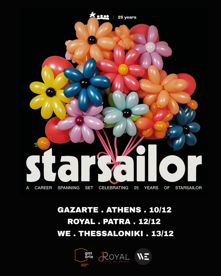 07 Οκτωβρίου 2025Οι Starsailor, ένα από τα πιο αγαπημένα και διαχρονικά συγκροτήματα της βρετανικής indie rock σκηνής, επιστρέφουν στην Ελλάδα για τρεις εορταστικές συναυλίες, στο πλαίσιο του “25 Years Anniversary Tour”, τιμώντας τα 25 χρόνια μιας πορείας γεμάτης ειλικρινούς τραγουδοποιείας και αθάνατων μελωδιών.
