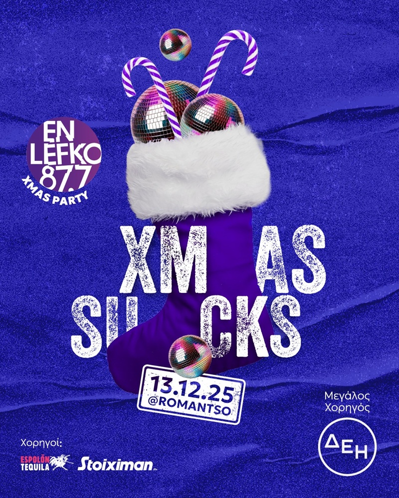 Μισή (μόνο) ώρα αργότερα, στις 22.00, τη «σκυτάλη» θα πάρει ο En Lefko 87.7. Το Χριστουγεννιάτικο πάρτι του θα γίνει στο «Ρομάντσο», σε τρία stages και με μουσικές από τους 11 DJs του «εναλλακτικού» ραδιοφώνου της Frontstage. Η προπώληση των εισιτηρίων γίνεται στο Frontstage.gr.