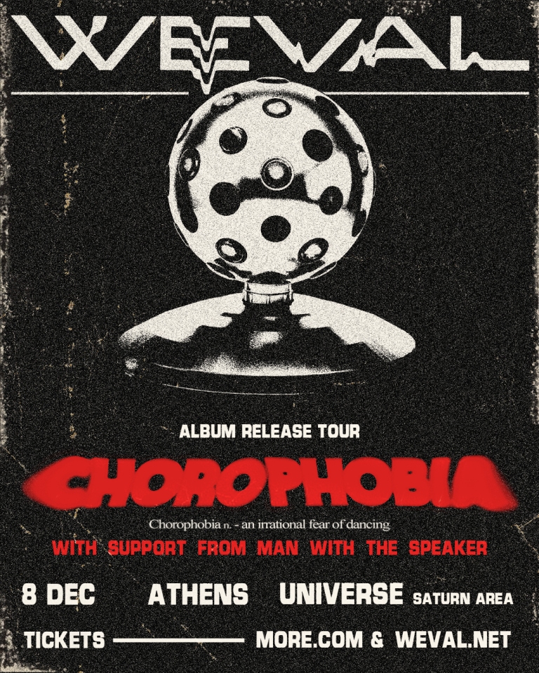 04 Δεκεμβρίου 2025Η χοροφοβία είναι ο φόβος που προκαλεί σε ορισμένους ανθρώπους και μόνο η ιδέα του χορού. Επίσης, είναι ο τίτλος του τελευταίου δίσκου των Weval, του ολλανδικού duo που έρχεται για μια μοναδική εμφάνιση τη Δευτέρα 8 Δεκεμβρίου στο Universe.
