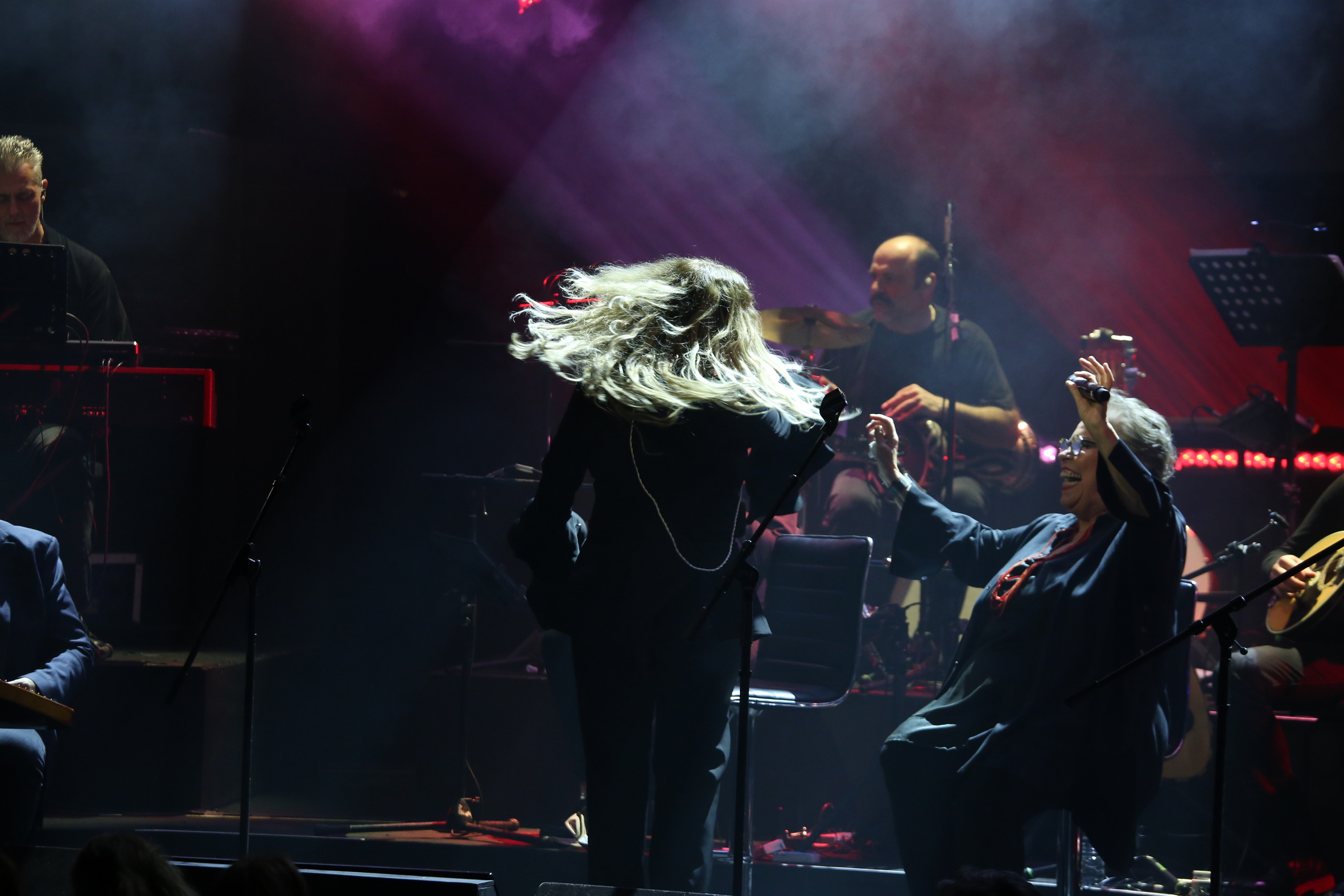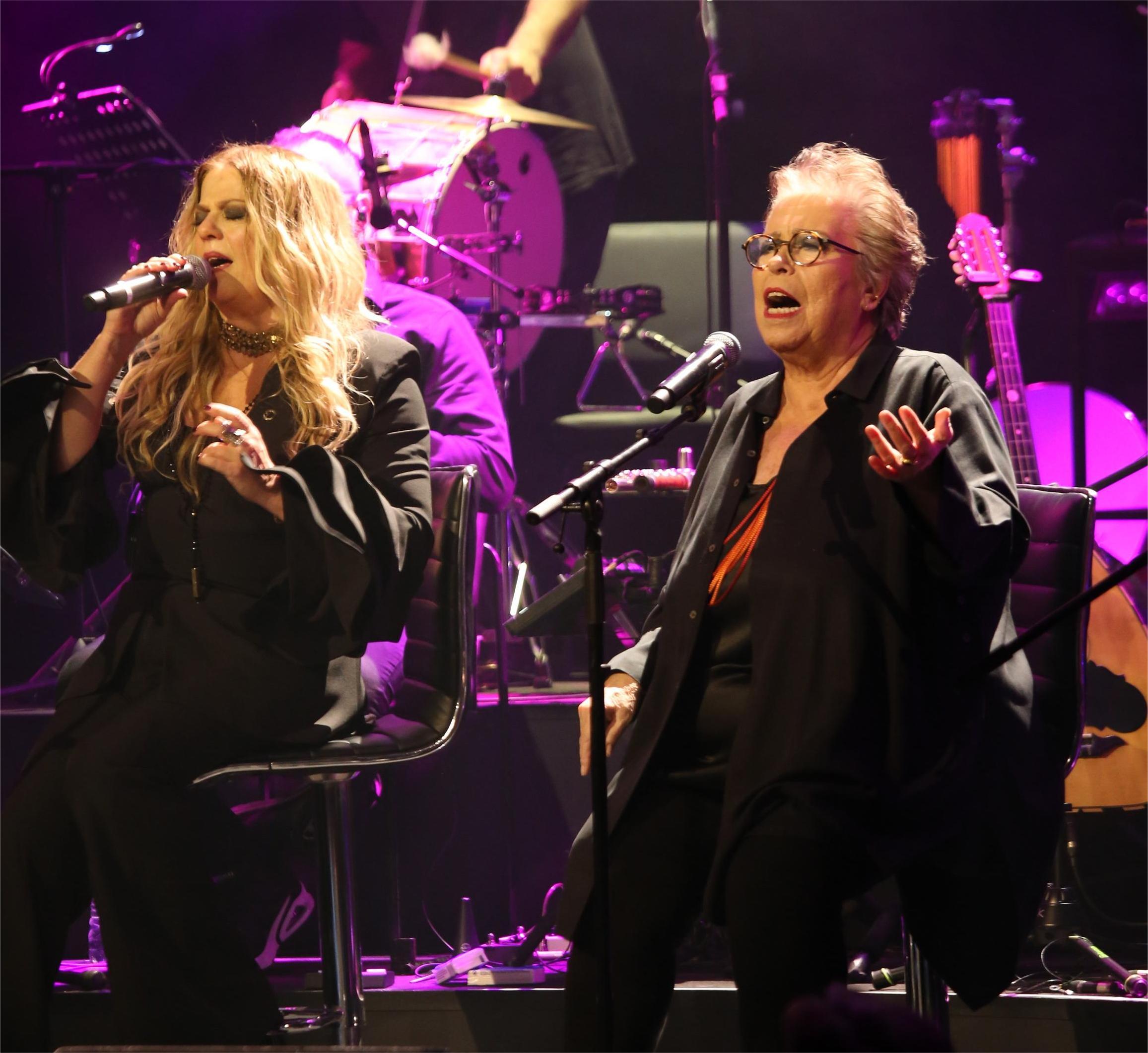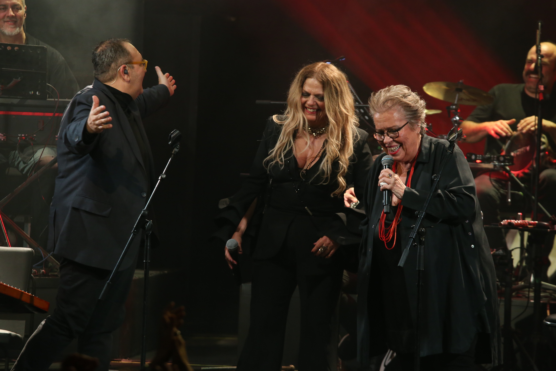 Δεν είναι μόνο οι δύο κυρίες που βρίσκονται στα καλύτερά τους – και για τις οποίες θα γράψω παρακάτω. Το βασικό ατού του live είναι αυτή η ορχηστράρα η Εστουδιαντίνα Νέας Ιωνίας! Μιλάμε για ένα κράμα δεξιοτεχνίας, συναισθήματος, γνώσης και αγάπης για το αντικείμενο, φροντίδας και απόλαυσης. Οι παιχταράδες αυτοί καλοπερνάνε πάνω στη σκηνή, προσδίδοντας λάμψη σε κάθε τραγούδι και σε κάθε φράση και σε κάθε νότα που παίζουν. Παλιά, αγαπημένα τραγούδια «φωτίζονται» από τα μαγικά τους χέρια, από τα ανθεκτικά τους πνευμόνια και από τα δημιουργικά τους μυαλά. Αυτή η ορχήστρα που, εδώ και τριάντα χρόνια, γίνεται καλύτερη και καλύτερη, έχοντας αποφύγει τον ήχο «φασόν» και προσεγγίζοντας κάθε της εμφάνιση ως νέα πρό(σ)κληση για «παιχνίδι», έκανε και χθες το θαύμα της. Σε ενορχήστρωση Ανδρέα Κατσιγιάννη. Από κοντά και οι δυο «μεταγραφές», ο Σεραφείμ Γιαννακόπουλος στα τύμπανα (τρομερό «δέσιμο» και προστιθέμενη αξία) και ο Σπύρος Χατζηκωνσταντίνου στην κιθάρα (ήρεμη δύναμη).