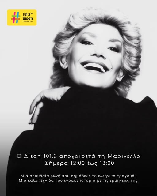 Η αγαπημένη μας Μαρινέλλα, η Μεγάλη Κυρία του ελληνικού τραγουδιού, έφυγε σήμερα από τη ζωή. Το Αρχείο της ΕΡΤ αποχαιρετά με θλίψη την εμβληματική ερμηνεύτρια και παρουσιάζει ρεπορτάζ από την εκπομπή «Παρασκήνιο», με μια σπάνια συνέντευξη της μοναδικής Μαρινέλλας τον Μάιο του 1982. Είχε προηγηθεί ο χειμώνας 1981-1982, κατά τον οποίο παρουσίαζε πρόγραμμα με αποσπάσματα από μιούζικαλ στο «Ζουμ» της Πλάκας, που άφησε εποχή. Το 1982 πραγματοποίησε επίσης περιοδεία με τον Κ. Χατζή σε όλη την Ελλάδα, ενώ την ίδια χρονιά ετοίμαζε τον δίσκο «Για σένα τον άγνωστο», σε μουσική Γ. Χατζηνάσιου και στίχους Γ. Μπουρμπούλη, ο οποίος κυκλοφόρησε το 1983 και της χάρισε μεγάλες επιτυχίες, όπως το «Καμιά φορά», «Είσαι ποτάμι» και άλλα.